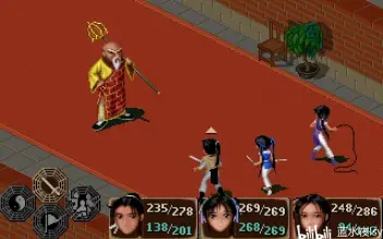 10.出扬州遇剑圣时,dos版背景是蓝天;98是黑的(神木林也一样,dos蓝天 98黑屏)