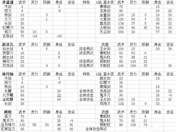 林月如:凝神归元 气剑指 7级一阳指 10铜钱镖 14七决剑气 17元灵归心术 18乾坤一掷 22斩龙诀