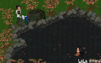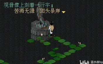3.莲花池,观音像重新绘制过。dos版是“苦海无涯,回头是岸”;98是“苦海无边,回头是岸”